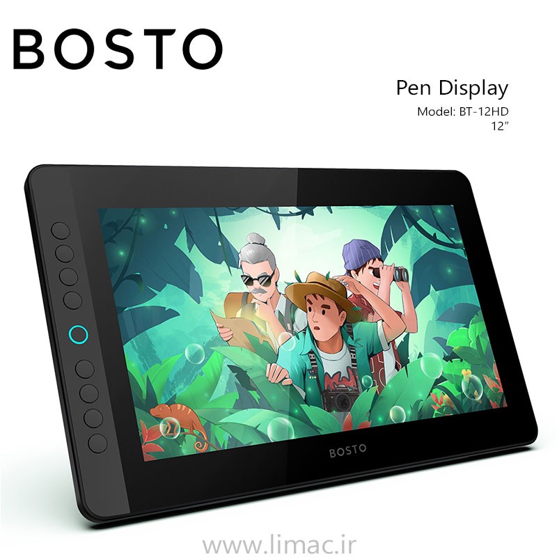 قلم طراحی و نمایشگر BOSTO BT-12HDK دارای صفحه نمایشی لمسی به ابعاد ۱۱.۶ اینچ و با وضوح ۱۰۸۰ × ۱۹۲۰ پیکسل است. مشخصات فنی این قلم طراحی و نمایشگر باعث میشود که این محصول در بالاترین ردهها قرار گیرد. سرعت گزارشدهی موقعیت قلم 300 RPS، شناسایی 8192 LPS (سطوح فشار) و دقت 5080 LPI باعث میشود که کار با قلم طراحی و نمایشگر مطابق با انتظار پیش برود.