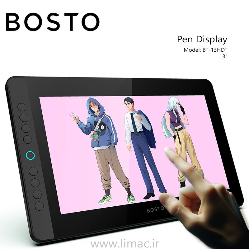 قلم طراحی و نمایشگر BOSTO BT-13HDKT دارای صفحه نمایشی به ابعاد ۱۳.۳ اینچ و با وضوح ۱۰۸۰ × ۱۹۲۰ پیکسل است که به شما این امکان را میدهد که به سرعت بتوانید تصاویررا بچرخید، حرکت دهید و زوم کنید. مشخصات فنی این قلم طراحی و نمایشگر باعث میشود که این محصول از در رتبههای بالاتری قرار گیرد. سرعت گزارشدهی موقعیت قلم 300 RPS، شناسایی 8192 LPS (سطوح فشار) و دقت 5080 LPI باعث میشود که کار با قلم طراحی و نمایشگر مطابق با انتظار پیش برود.