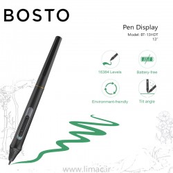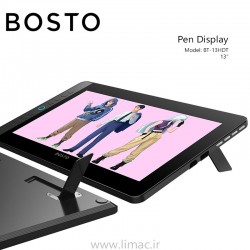 قلم و نمایشگر BOSTO BT-13HDKT یک صفحه طراحی با صفحه نمایش LCD است. این دستگاه نشانگر (مثل موس یا صفحهکلید) برای ایجاد گرافیکهای دیجیتال طراحی شده است. همچنین در حین یادگیری، یادداشتبرداری، برگزاری ارائهها یا سخنرانیها نیز مفید است. همانطور که از نامش پیداست، این قلم طراحی دارای نمایشگر است. نتایج کار بهراحتی بر روی صفحه نمایش و همچنین کامپیوتر قابل مشاهده است. قلم طراحی و نمایشگر برای کار نیاز به اتصال مداوم به کامپیوتر دارد.