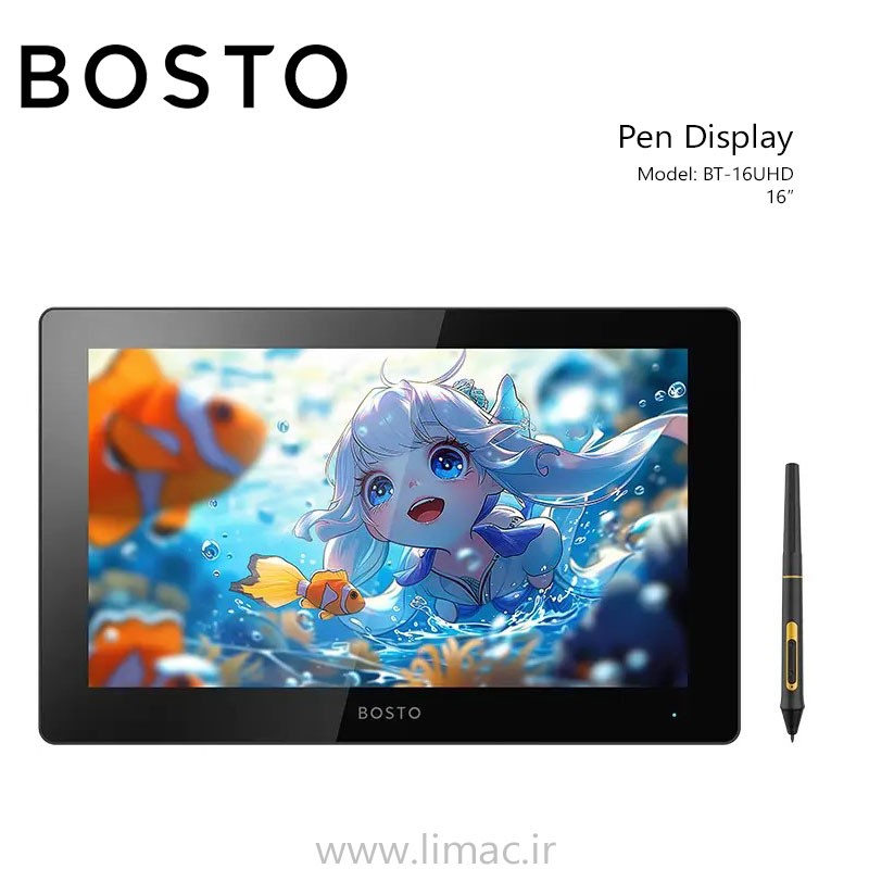 قلم و نمایشگر BOSTO BT-16UHD یک صفحه طراحی با صفحه نمایش LCD است. این دستگاه نشانگر (مثل موس یا صفحه‌کلید) برای ایجاد گرافیک‌های دیجیتال طراحی شده است. همچنین در حین یادگیری، یادداشت‌برداری، برگزاری ارائه‌ها یا سخنرانی‌ها نیز مفید است. همانطور که از نامش پیداست، این قلم طراحی دارای نمایشگر است. نتایج کار به‌راحتی بر روی صفحه نمایش و همچنین کامپیوتر قابل مشاهده است. قلم طراحی و نمایشگر برای کار نیاز به اتصال مداوم به کامپیوتر دارد.